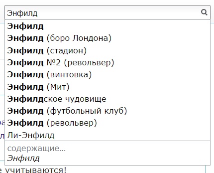 Релевантность ниспадающего списка